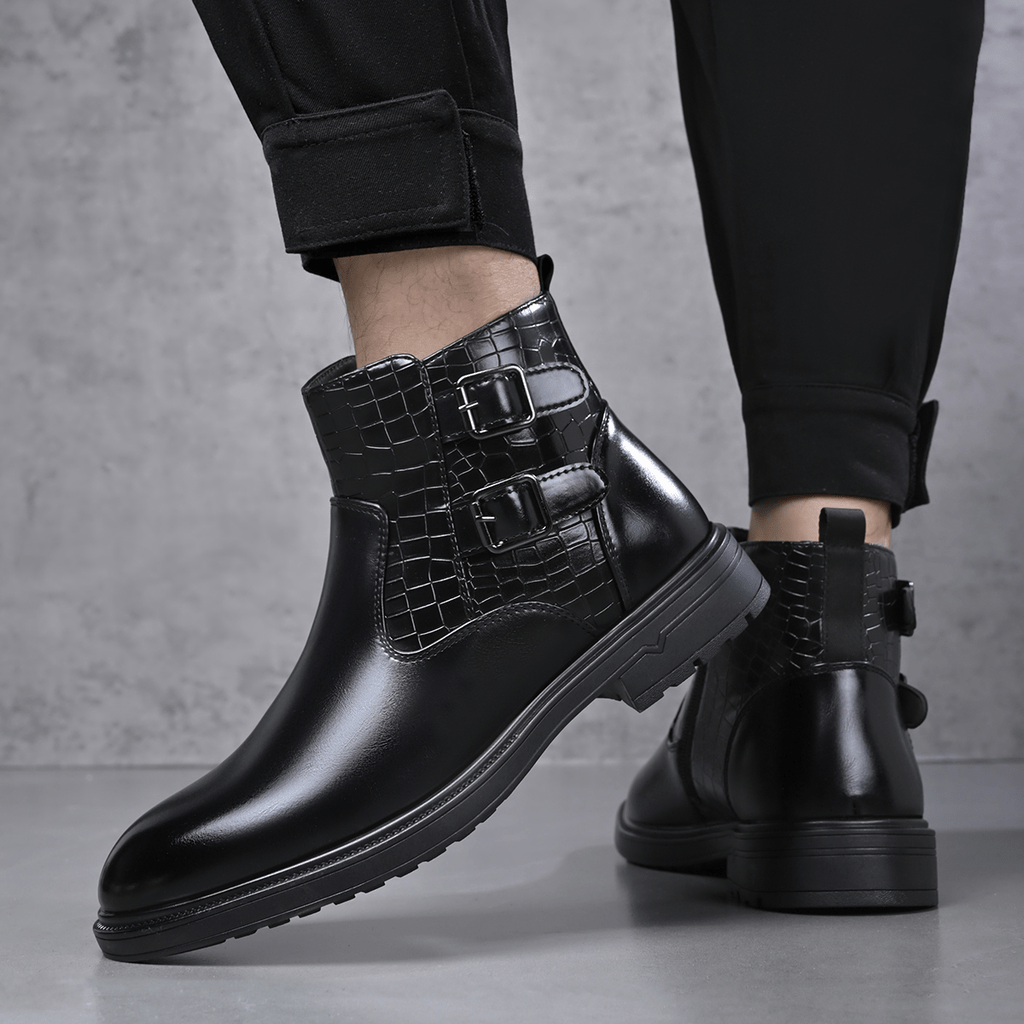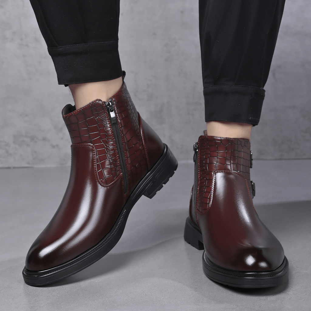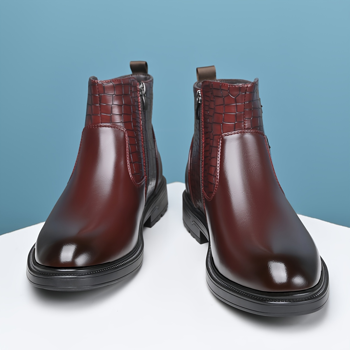 Men'S Ankle Boots - Slip-On Zipper & Buckle Closure, Synthetic Cover Upper, Cushioned Insole & Non-Slip Rubber Sole - All-Season Formal & Casual Shoes for Office, Everyday, Outdoor - Brown Boots for Fall/Winter - Easy-Clean Footwear, Office Wear, Sleek Design, Durable Construction, Urban Style, Everyday Footwear, Modern Footwear, Comfortable Lining, Professional Attire, Men Shoe, Shoe For Men High Quality, Men' Shoe, Winter Shoe For Men, Formal Shoe For Men