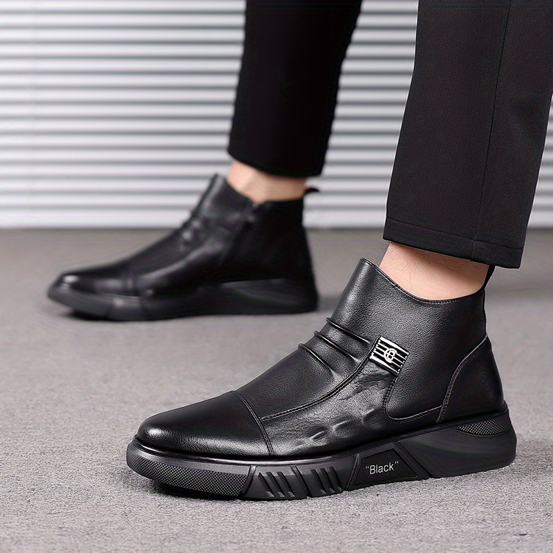Men'S Business Casual High-Top Ankle Boots with Side Zipper - Comfortable Non-Slip Thick Sole, Breathable Microfiber Synthetic & Faux Lining, Durable Rubber Outsole for Office, Outdoor, and Casual Attire - Black, Office Footwear, Modern Footwear, Secure Fit Footwear, Men'S Shoes, Height-increasing Landrova For Men, Casual Sports Shoes For Men, School Shoes For Teenage , Men Shoe