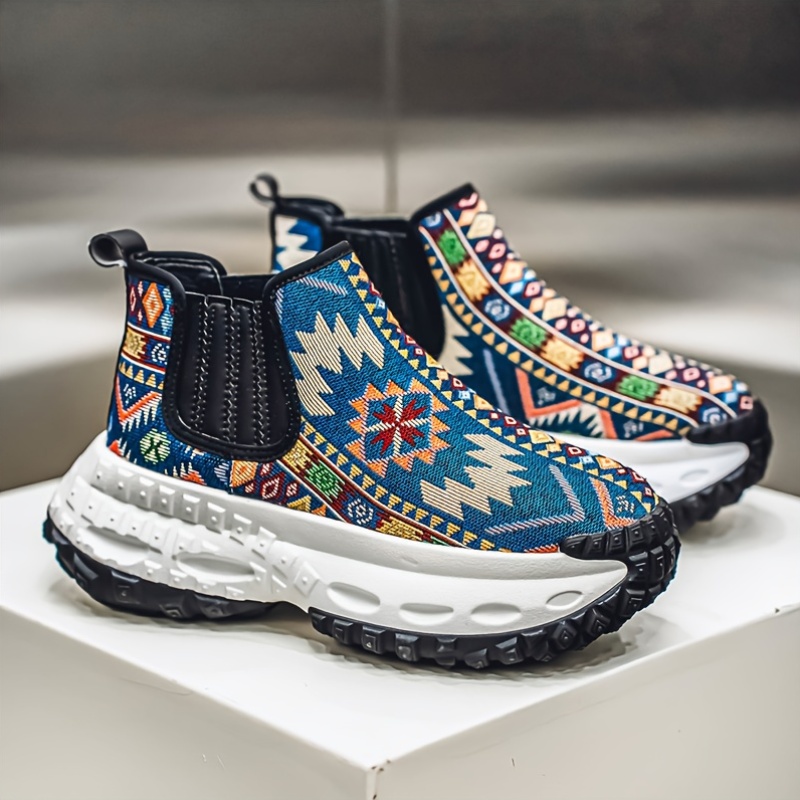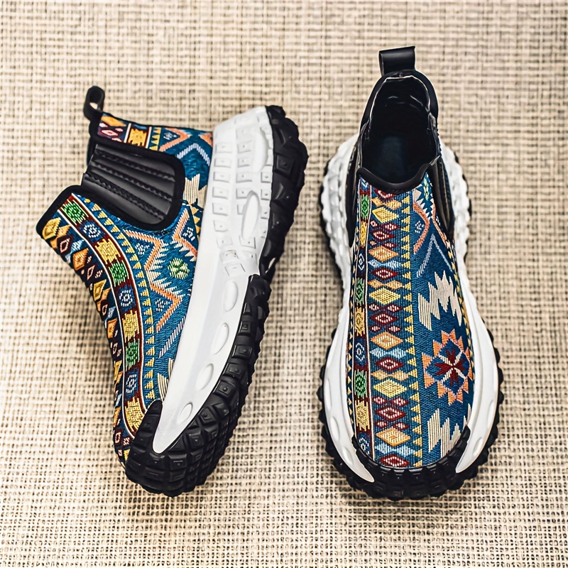 Men'S All-Season Hiking Shoes - Slip-On/Lace-Up Closure, Breathable Fabric Upper & Non-Slip PVC Outsole, Mid-Calf Support for Outdoor, Gym, Everyday - Beige/Blue/Black/Red/White/ - Durable Trekking Shoes for Men, Outdoor Footwear, Geometric Pattern, Secure Fit, Versatile Footwear, Active Lifestyle, Shoe For Men High Quality