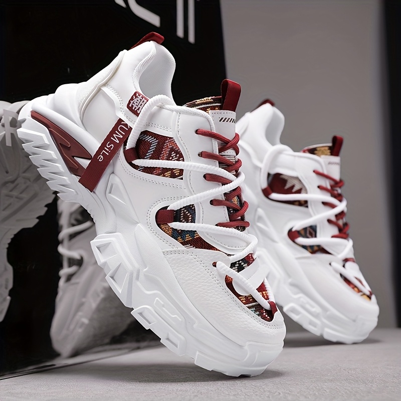 Men's Fashion Dad Shoes - Casual & Athletic Sneakers with Mesh Upper, Breathable Design, White & Multicolor Pattern, Comfortable for Casual Attire, Running, and Sports