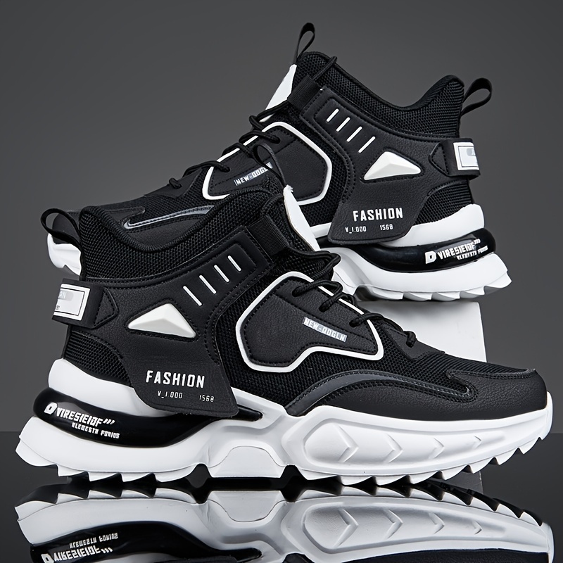 Men's Solid Trendy Chunky Shoes With Shock Absorption, Comfy Non Slip Lace Up Sneakers For Men's Outdoor Activities