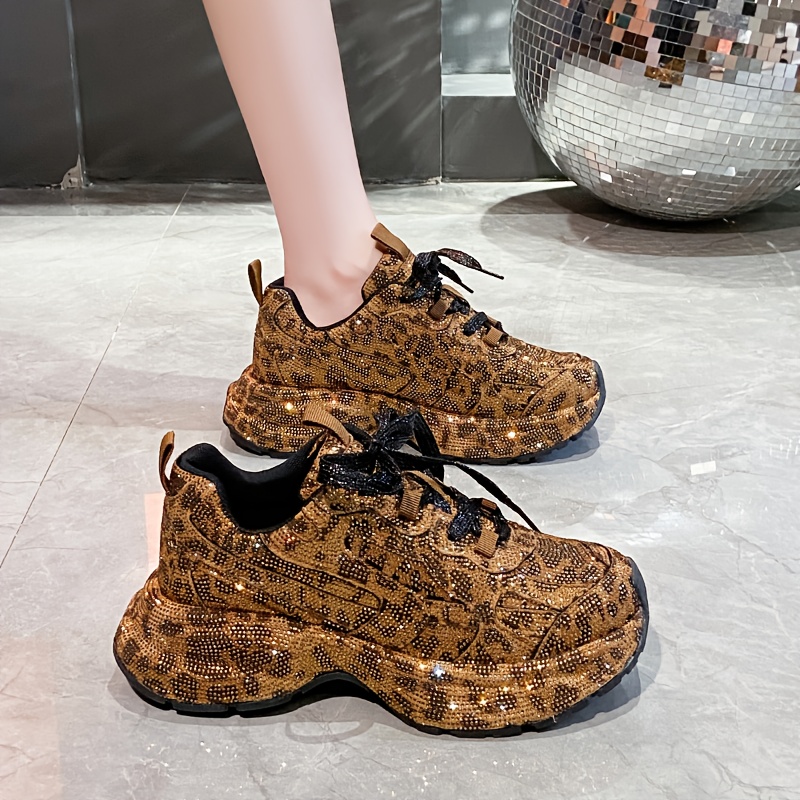 New Women'S Fashion Sneakers - Thick Sole, Lace-Up, Round Toe, Fabric Upper, Rubber Sole, Synthetic Insole, All-Season Casual Shoes with Crystal Embellishments - Perfect for Holiday Parties & Casual Attire, Casual Footwear | Stylish Laceup Shoes | Durable Rubber Sole, Glitter Sneakers For Women, Red Sneakers For Women, Platform Sneakers For Women, Shiny Sneakers For Women, Fashionable Sneakers For Women, Platform Sneaker For Women