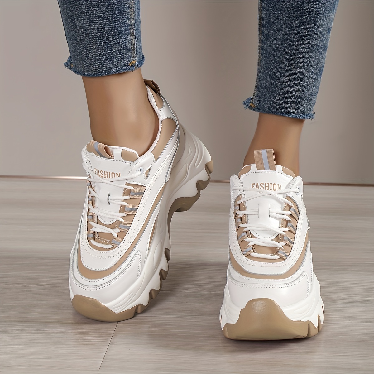 Women's Colorblock Chunky Sneakers, Casual Lace Up Outdoor Shoes, Comfortable Platform Low Top Shoes