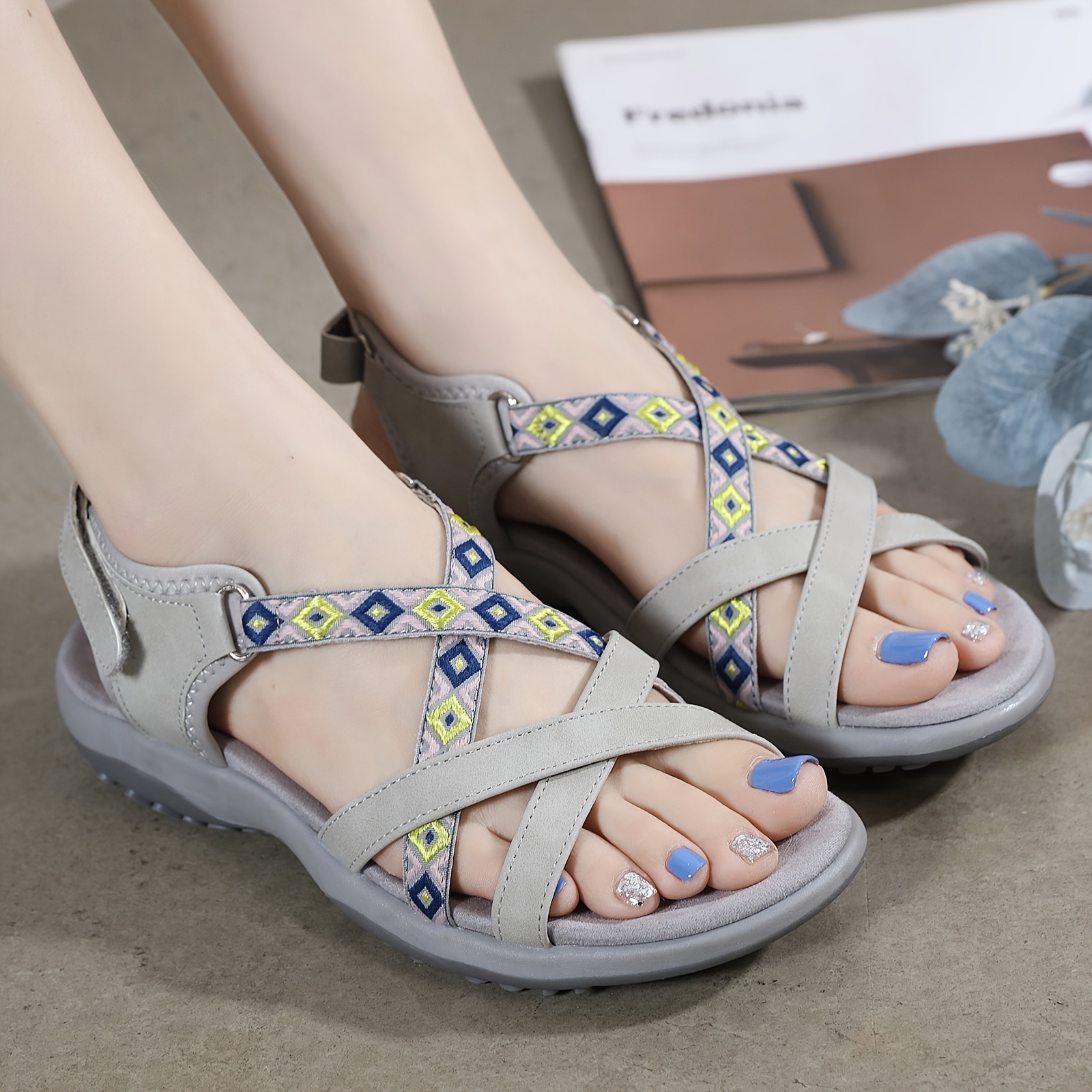 Women'S Summer Casual Flat Sandals - Breathable Mesh Upper, Non-Slip Rubber Sole, Adjustable Hook-and-Loop Strap, Lightweight Comfort for Outdoor & Casual Attire, Grey, Strappy Sandals