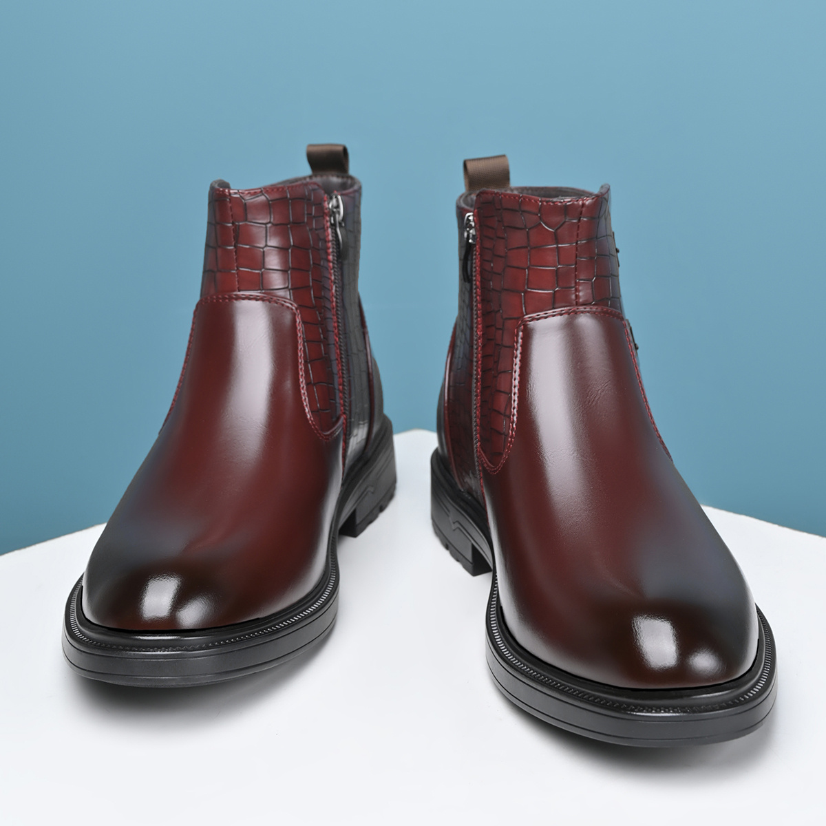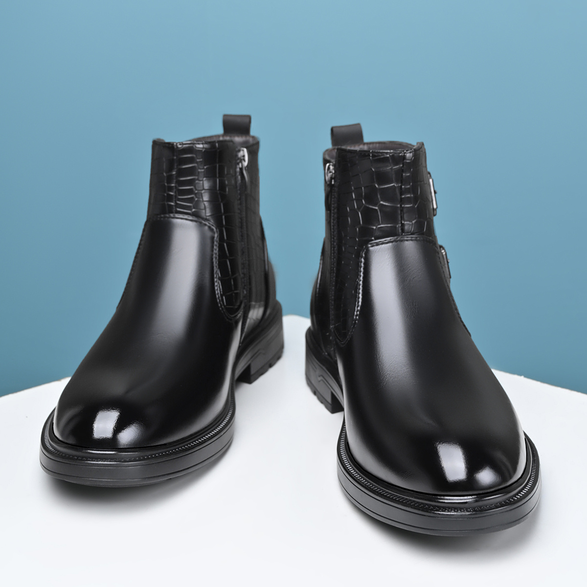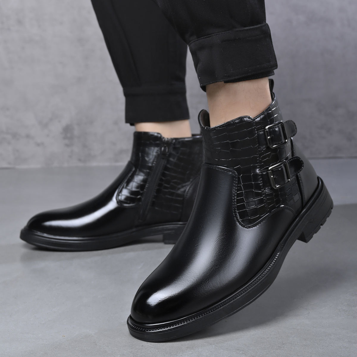 [Men's Ankle Boots] Slip-On & Zipper Closure Men's Ankle Boots | Synthetic Upper, Cushioned Insole & Non-Slip Rubber Outsole | Formal & Casual, Easy-Clean Black, Fall/Winter, Party Footwear, Embossed Animal Design, Durable Traction, Office Wear, Classic Style, Sturdy Construction, Fashion Enthusiasts