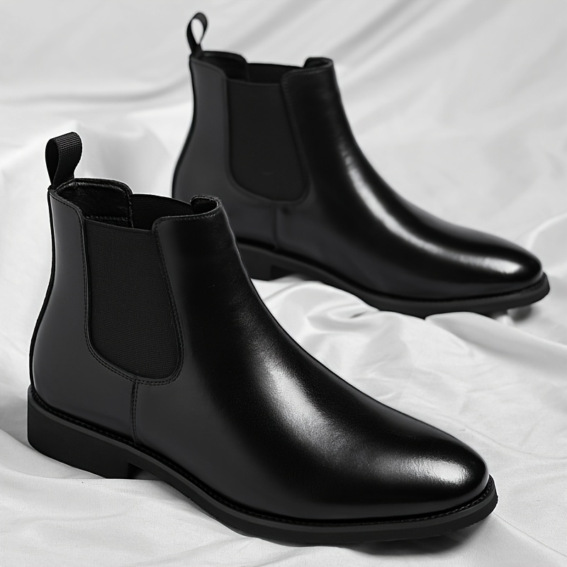 [Easy On/Off Fashion Boots] Plus Size Men's Casual Chelsea Boots - Slip-On Square Toe, Lightweight All-Season Comfort, Faux Cover Upper & Rubber Sole, Round Toe Design for Daily Wear, Outdoor Activities - Easy On/Off Fashion Boots, Outdoor Footwear, Minimalist Style, Durable Construction, Urban Style