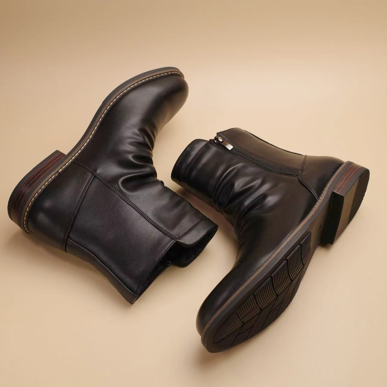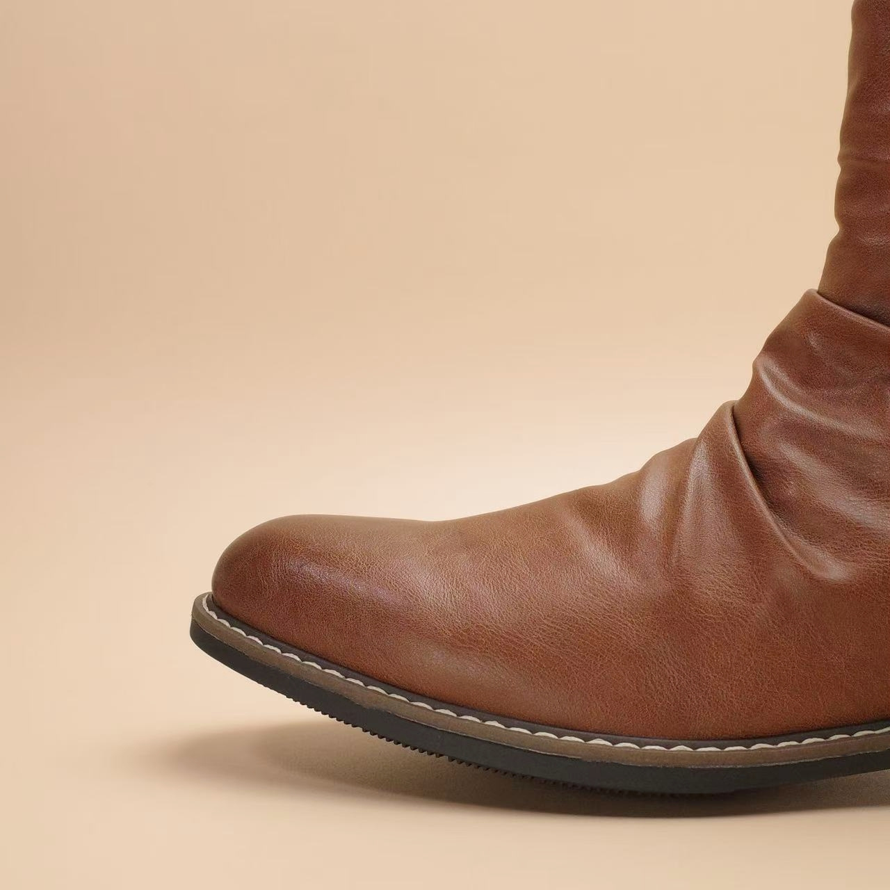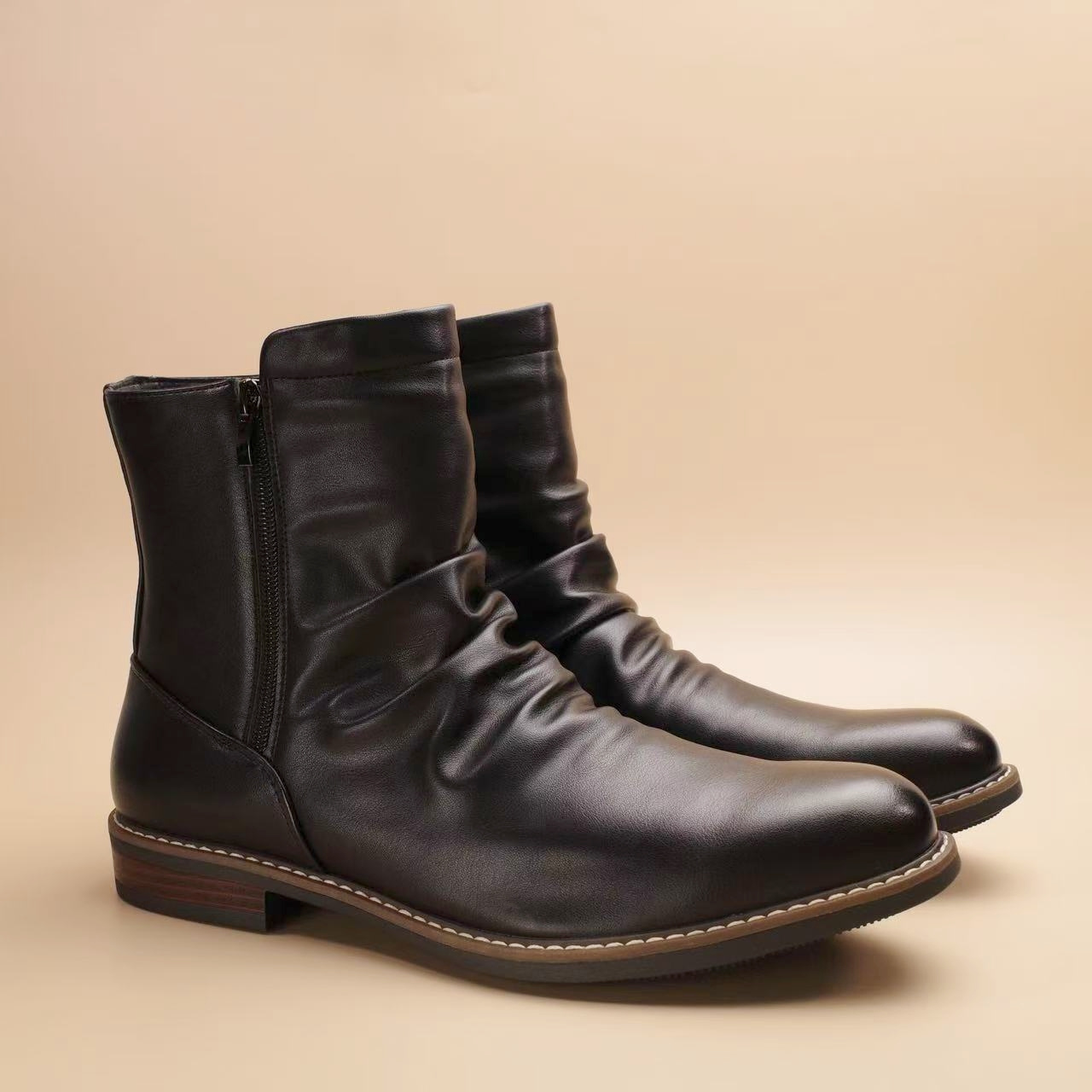 Men'S Slip-On Zipper Closure Ankle Boots - Faux Cover, Brown, Round Toe, Rubber Sole, Casual & Formal Wear, Casual Footwear | Sleek Boot Design | Durable Rubber Sole