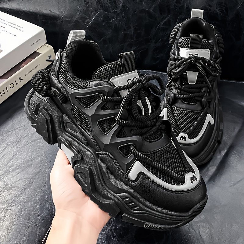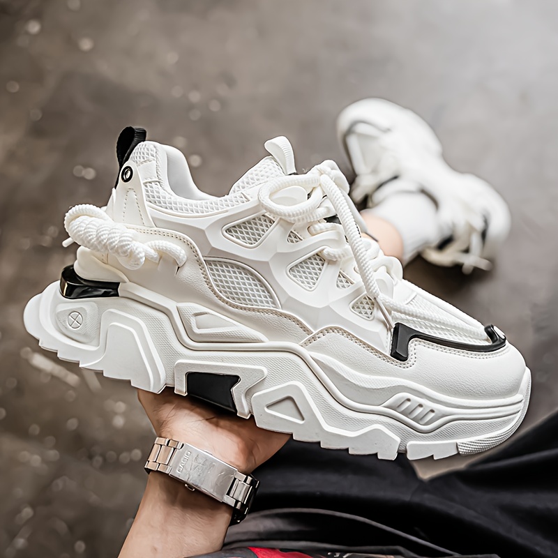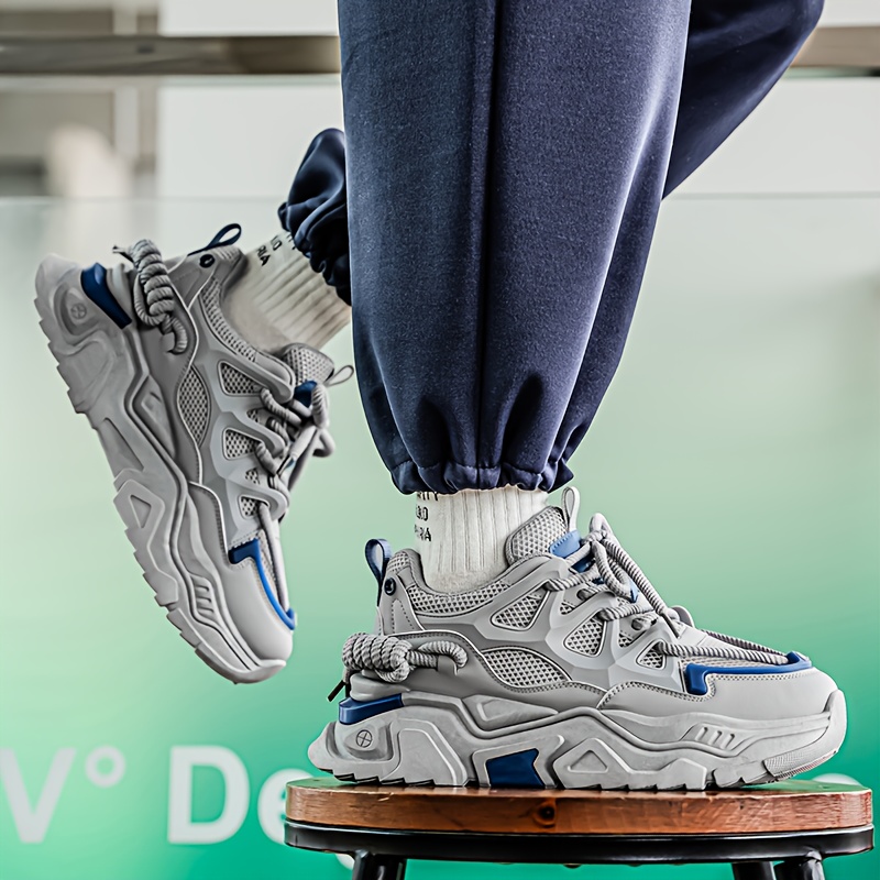 Men'S Breathable Mesh Sneakers with Thick Cushioned Sole - Lightweight Low-Top Lace-Up Shoes for Casual, Running & Outdoor Activities - All-Season Comfort, & Accents, Synthetic Synthetic Faux Upper, Round Toe Design, Hiking Footwear