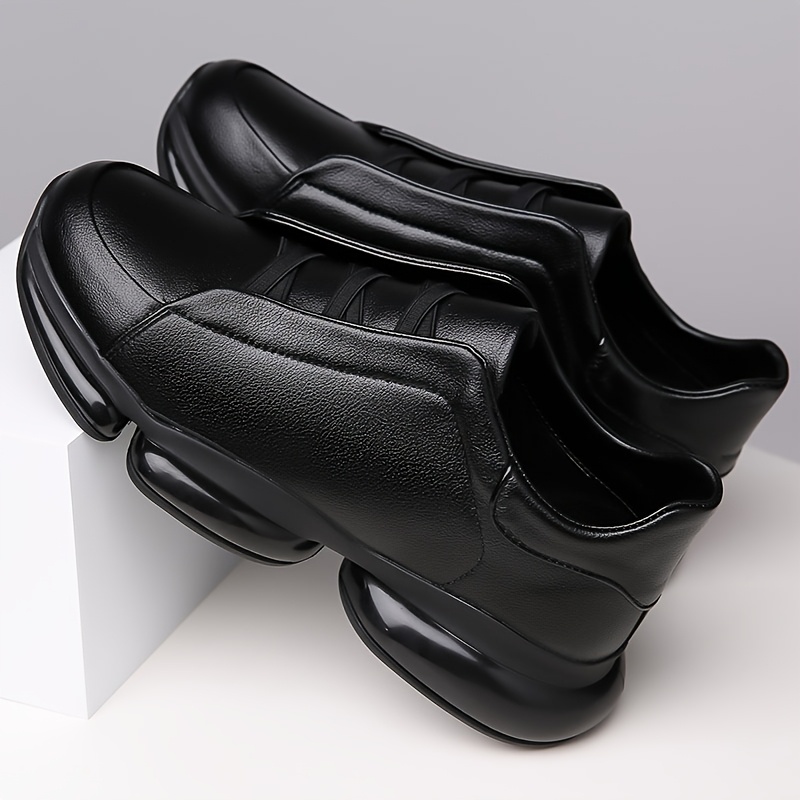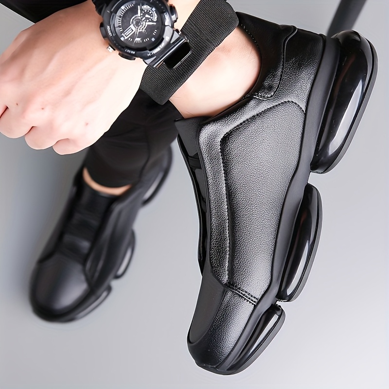 Men's Slip-On Casual Sneakers - Black Synthetic Low-Top Shoes with Round Toe, Rubber Sole, and Comfortable PU Inner Lining for Casual Attire