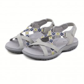 [Summer Comfort Sandals] Plus-Size Women's Summer Sandals - Cross Straps, Solid Color, Thick Soft Soles, Comfortable Flat Sports Sandals