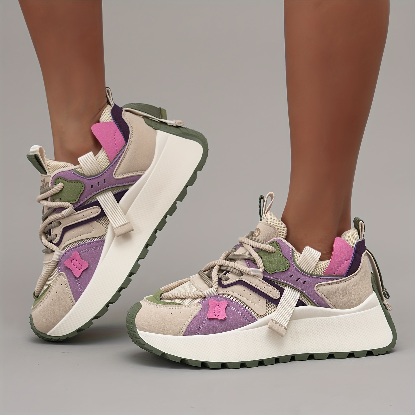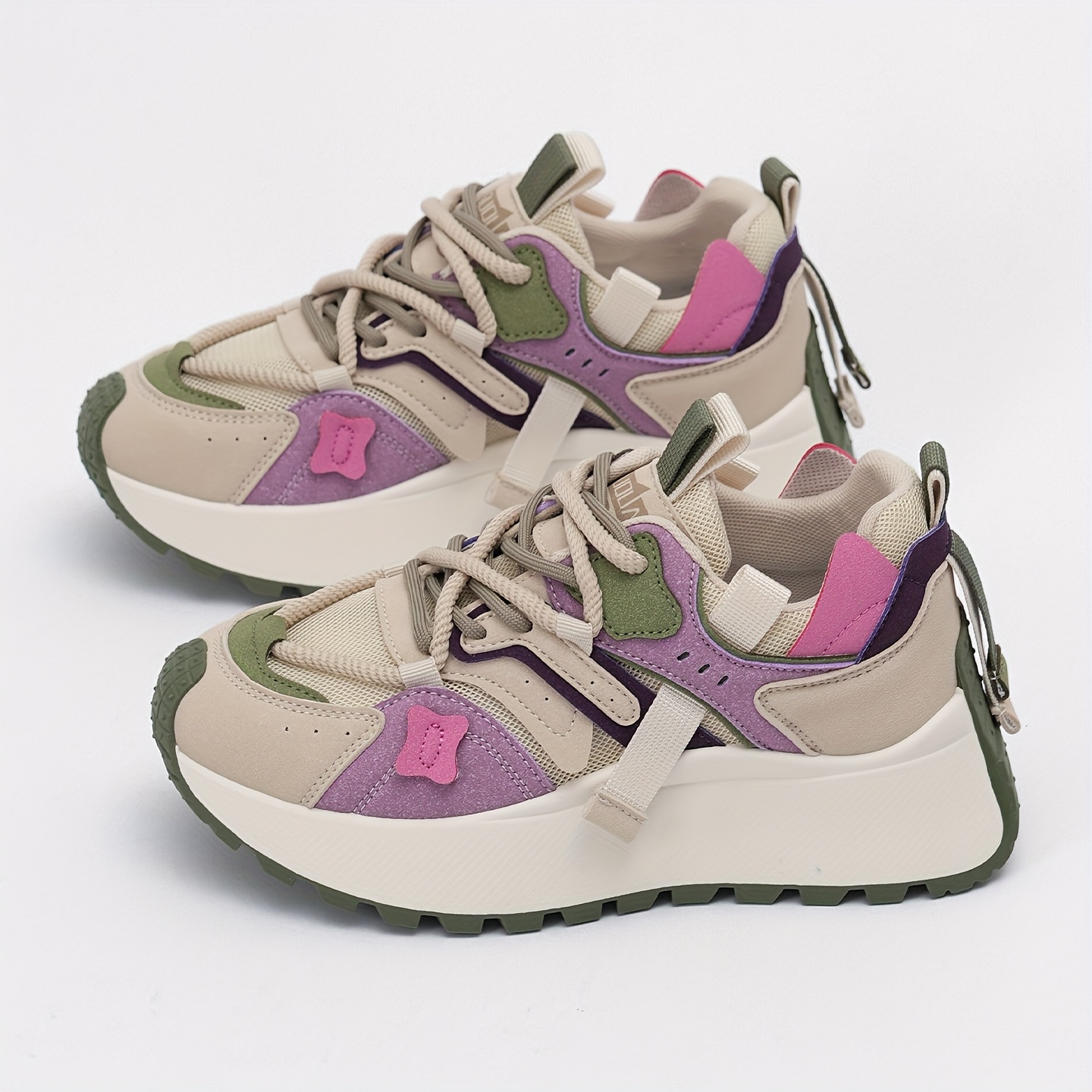 Women'S Dopamine Casual Sneakers - New Arrival, Spring & Fall Fashionable Color Block Design, Comfortable Mesh Breathable Thick Sole, 5cm/1.97" High, Ideal for Travel & Parties, Casual Footwear | Color Block Sneakers | Comfortable Footwear
