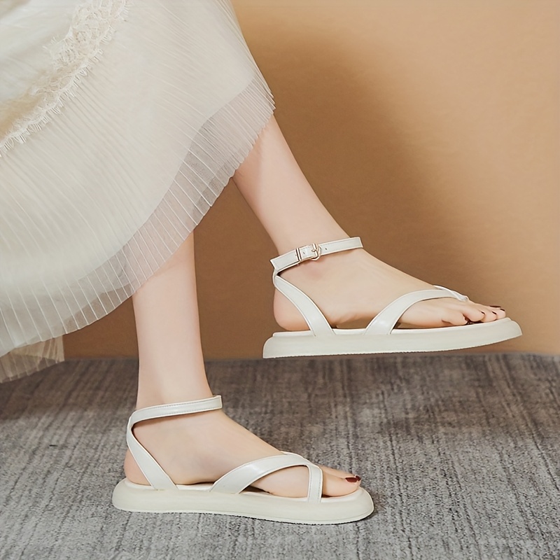 Women's White Sandals - Open-Toe Summer Shoes with Cushioned Insole, Non-Slip Rubber Sole - Synthetic Cover Strap Closure for Beach, Parties, Everyday Casual Outfits - Easy-Clean Women's Footwear, Beach Shoes, Minimalist Design, Breathable Material, Party Wear